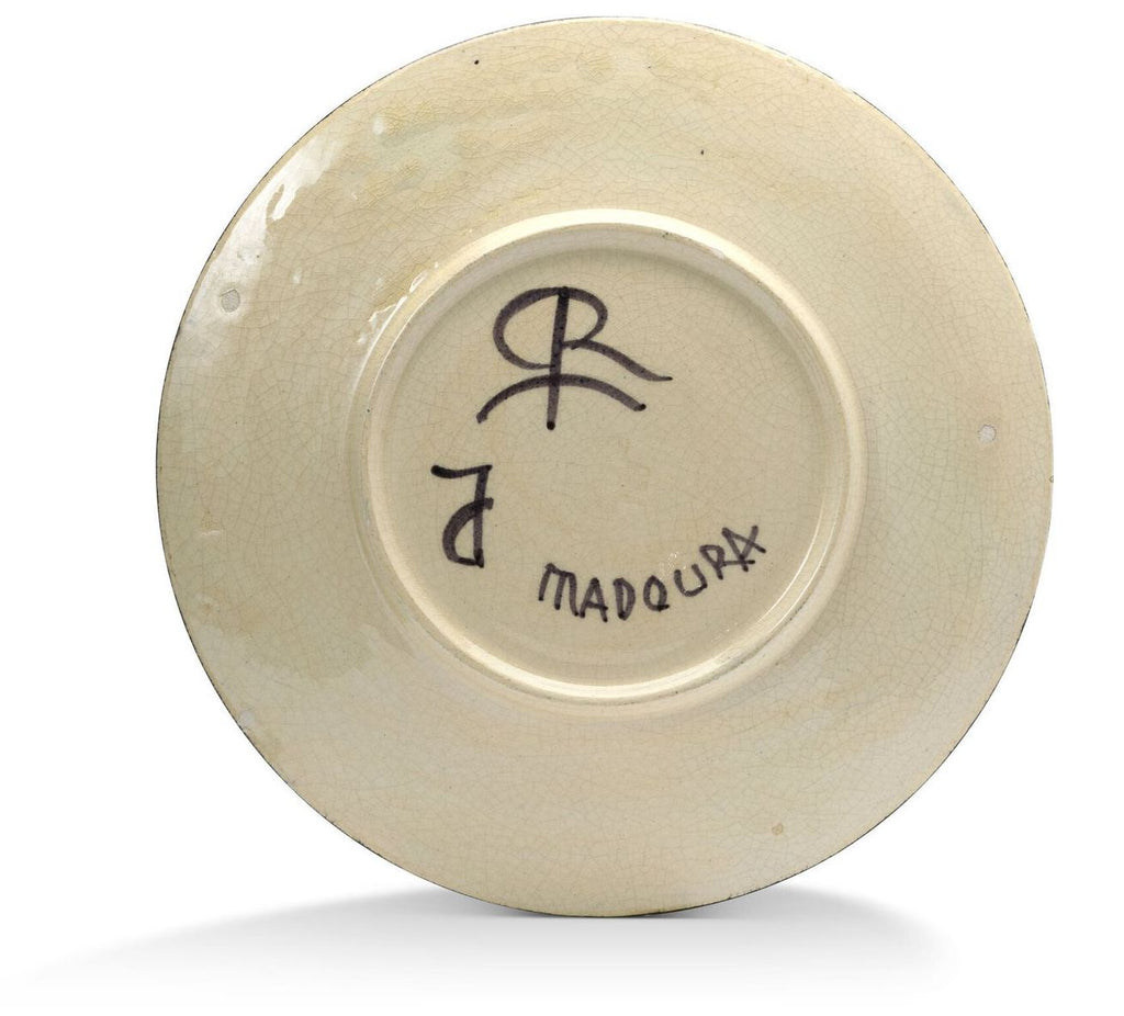 "Faïence Earth" Plate, painted, engraved, and glazed, stamped with the "Madoura/Plein/Feu" mark; inscription "Madoura" and "B".