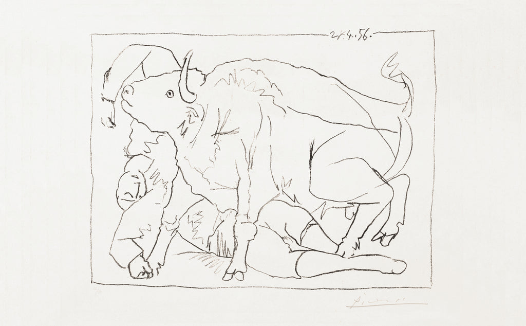 Le Torero blessé €19,000.00 Default Title - €19,000.00 Quantity This product is currently sold out. Pablo Picasso Le Torero blessé 1956 Original Lithograph on Velin d'Arches paper Sizes: 35.5 x 47 cm (image) 50.5 x 66 cm (Sheet) (M 278) Bloch 799