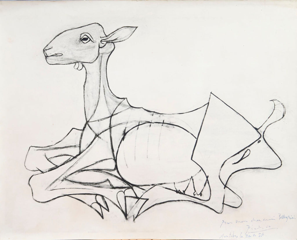 The goat motif is closely connected to Picasso’s personal environment, including the well-documented goat at his Vallauris residence.
